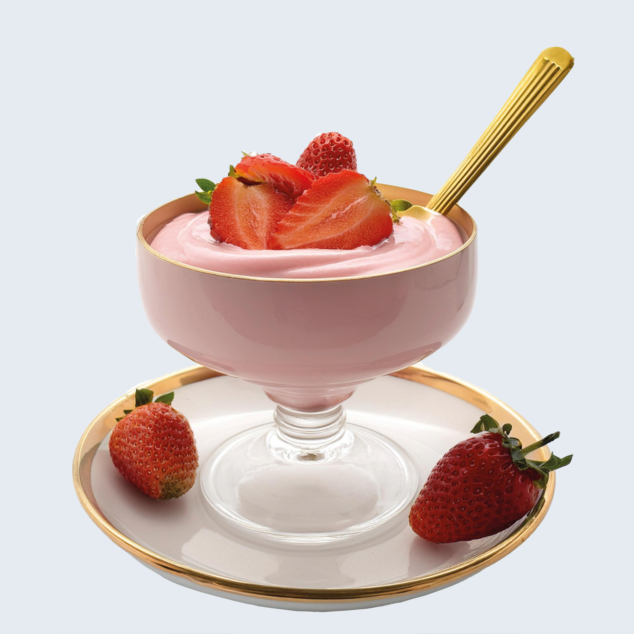 Strawberry Cream: Whey Protein Concentrate 95,46% (melk), smaakstof, bietrood (kleurstof), verdikkingsmiddelen (guargom, xanthaangom), zoetstoffen (sucralose, acesulfaam-K).